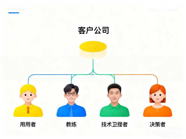 教练——销售人员在客户内部的向导和支持者,他们提供内部信息,指导销售策略。教练可能是产品使用者,也可能是其他角色,他们是销售成功的贵人。