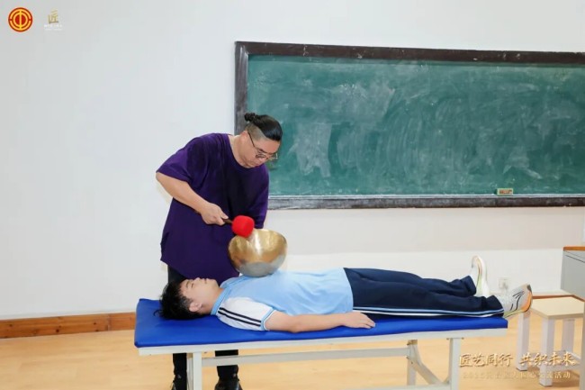 课堂上,杨裕仲老师从经络学与声学原理出发,深入讲解了“声灸”疗法的理论基础与实际应用。他以生动的案例、专业的示范和互动体验的方式,引导大家感受“声音疗愈”的独特魅力,展现了康养教育在身心调理与健康管理等领域的广阔前景。