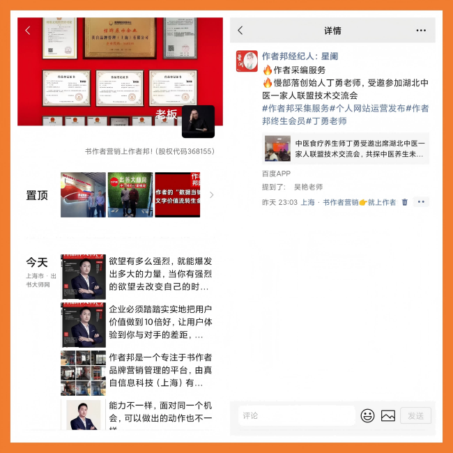 作者邦将朋友圈定位为一个“高价值、低干扰”的展示舞台。与漫无目的的刷屏广告不同,经纪人的每一条朋友圈都是一次精心策划的“价值展示”。
