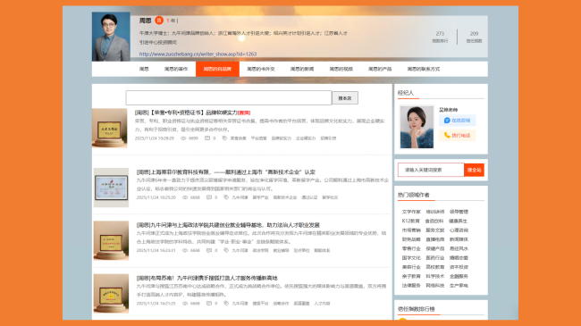 在信息爆炸的时代,品牌信誉与专业背书已成为客户选择服务时最为关键的考量因素。对于深耕留学咨询与学术辅导领域的“九牛问津”而言,其深厚的行业积淀与卓越的服务品质,最终凝结为一份份沉甸甸的荣誉证书。近日,九牛问津品牌创始人周思先生委托作者邦的资深采编经纪人,对其个人网站中的荣誉体系进行了一次系统性的梳理与升级,旨在将品牌的辉煌历程与硬核实力全景式地展现在目标客户面前。