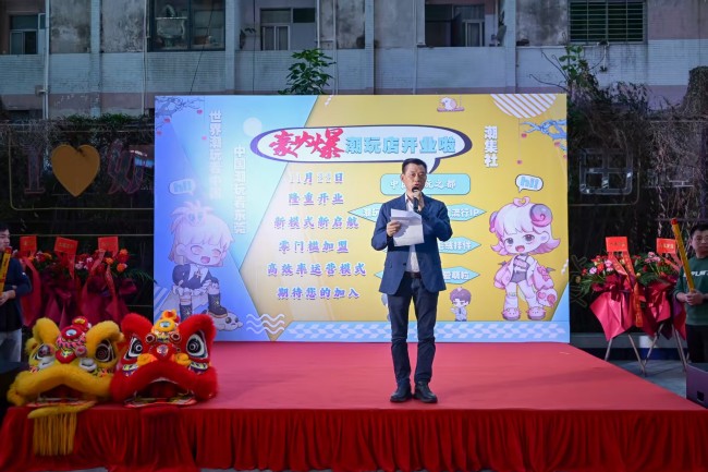 作为开业仪式的关键环节,投资方之一、金旺集团董事长陈瑞武先生的登台致辞将现场气氛推向了一个高潮。陈瑞武先生在热烈的掌声中,对豪火爆潮玩店的开业表示衷心祝贺。他在致辞中表示:“非常高兴能够参与到豪火爆这个充满活力与创意的项目中。当下,潮玩不仅仅是玩具,它更是一种文化符号,是连接年轻一代的情感载体,代表着快乐、个性与创造力。