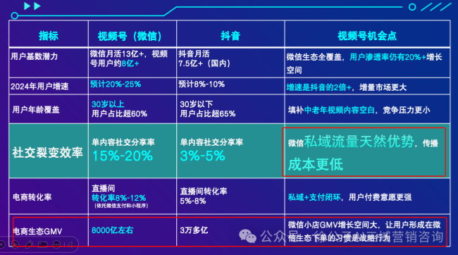 流量红利:视频号用户增速是抖音的2倍,竞争压力小,获客成本低;