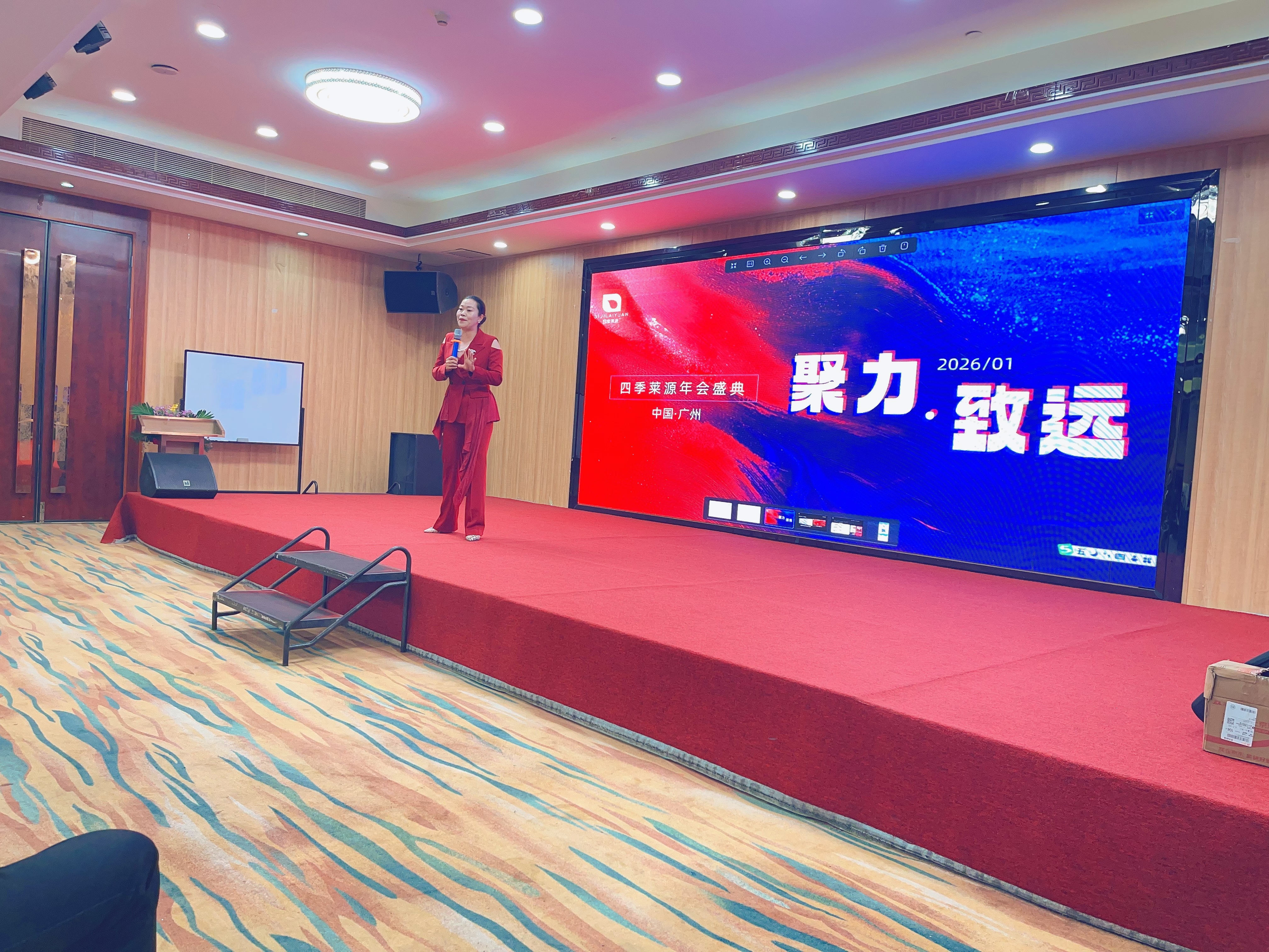 2026年1月7日,四季莱源11周年庆典晚会在广州盛大举办。现场灯火璀璨、气氛热烈,企业领 导、全国各地代理商及核心合作伙伴齐聚一堂,共庆这一里程碑时刻。
