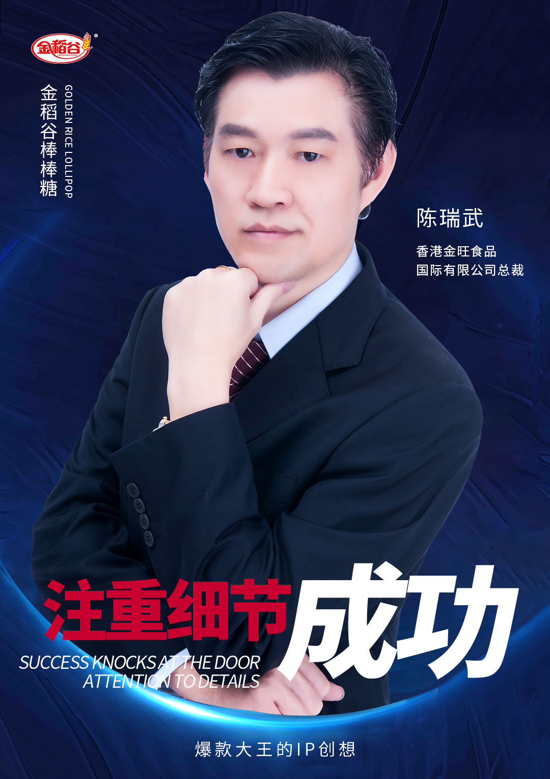 2004年,周星驰电影《功夫》风靡全国,片中棒棒糖的经典画面,意外为陈瑞武点亮了灵感之光。他敏锐捕捉到流行文化的强大感染力,大胆构想“IP+食品”的跨界新模式,决心打破传统糖果单一化的格局。从糖体口感的反复优化,到造型设计的精雕细琢,他亲力亲为、精益求精,首款金稻谷棒棒糖应运而生。这款兼具美味与趣味的产品一经推出,便迅速引爆市场、圈粉无数,不仅稳稳筑牢了事业根基,更让陈瑞武精准找准了差异化赛道,为公司后续的多元化发展指明了清晰方向。