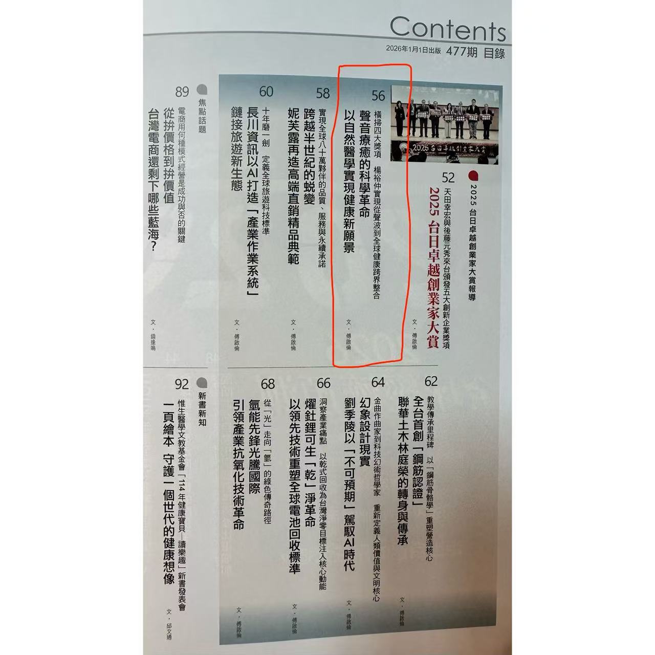 当被问及创业初心,杨裕仲总提及「传承」二字。在他看来,声疗不仅是一项技术,更是东方智慧的当代表达。通过培养专业人才、建立行业标准、推动国际合作,他正让「以自然之力疗愈身心」的理念深入人心。正如《卓越杂志》评价:「杨裕仲的卓越,不仅在于技术与商业模式的创新,更在于他以声为媒,传递着跨越国界的健康温度,成为连接传统与现代、东方与西方的健康使者。」