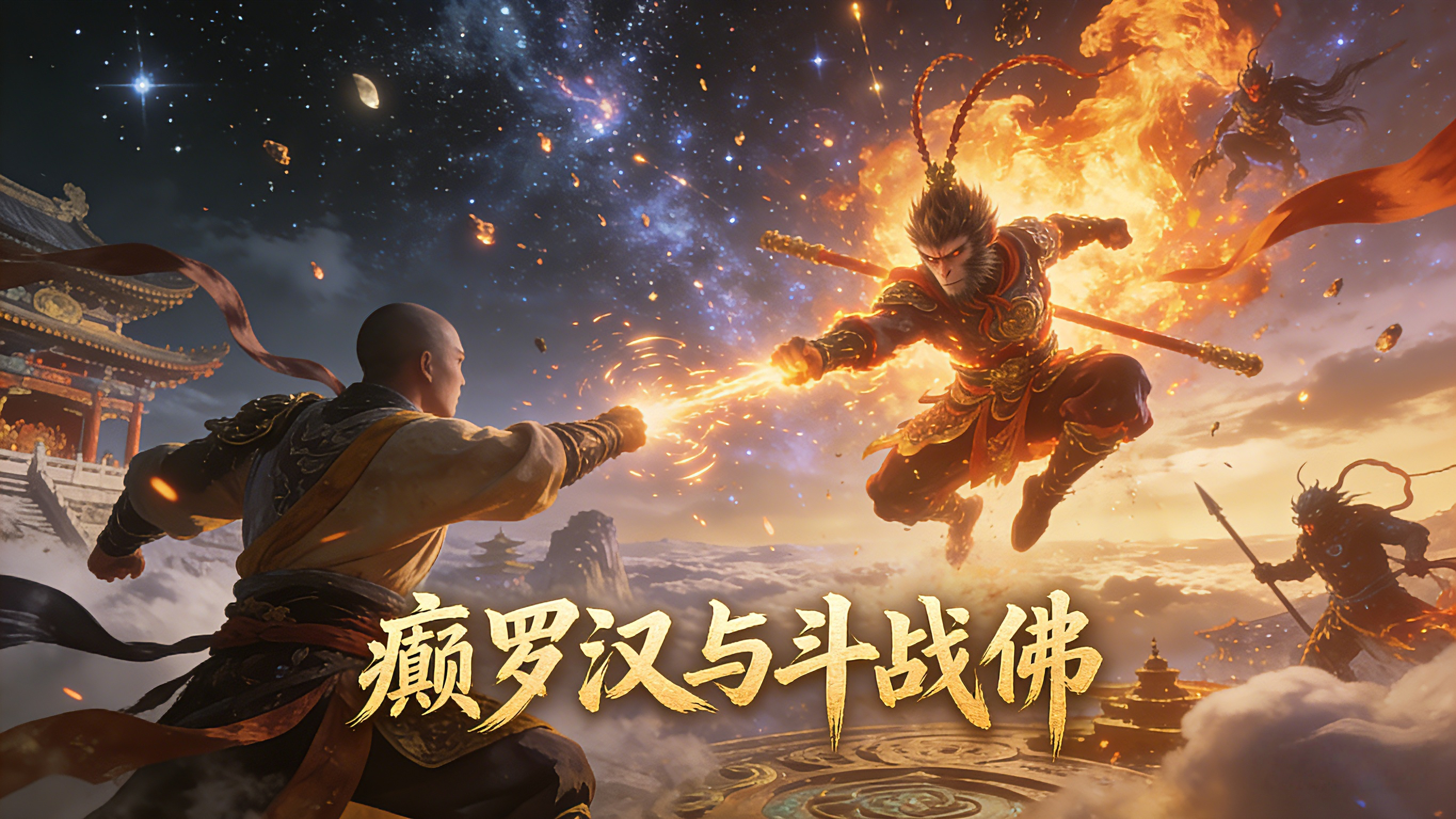 《癫罗汉与斗战佛》的人物塑造,堪称神魔题材的经典之作。少年李修缘被神力重塑后,性情带癫却心怀赤子,不循礼法、不拘佛规,是尚未悟道的“癫罗汉”,嬉笑怒骂间藏着傲骨,危难之际敢挺身而出;斗战佛则是三界正义的化身,兼具战神的刚猛与佛者的慈悲,一身战力震彻神魔,却愿为人间少年逆天改命,是引路者,亦是守护者。一癫一正,一佛一战,两个灵魂相互映衬,共同诠释着“正道在心”的真谛。