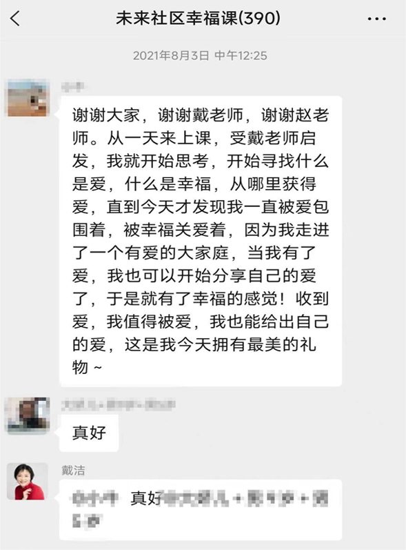 戴老师是“幸福课堂”专家、导师团队的一个代表。他们拥有专业的学养、丰富的经验以及赤诚的热情,以这个“课堂”为平台,真诚地为社区带来贴心、接地气的课程。