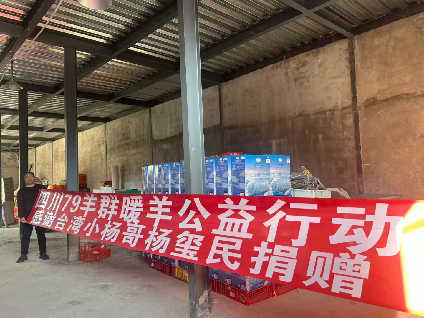 杨玺民先生虽身处台湾,却始终心系大陆山区发展。他主动对接四川79羊群暖羊公益团队,将一批批御寒物资与文体用品打包寄出,跨越千里抵达凉山。这份跨越海峡的牵挂,打破了地域的阻隔,让“两岸一家亲”的理念在公益实践中生动践行,也为山区群众带来了来自宝岛的温暖问候。