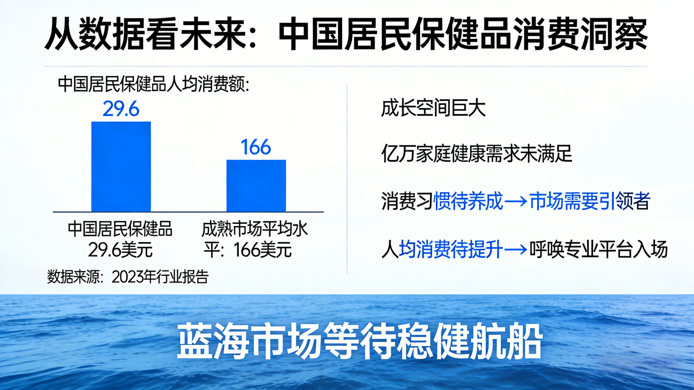 从数据看未来:我国居民保健品人均消费额仅为29.6美元,远低于成熟市场166美元的平均水平。这组数字背后,是巨大的成长空间,更是亿万家庭未被满足的健康需求。消费习惯尚未养成,意味着市场需要引领者;人均消费有待提升,呼唤着专业平台的入场。这片蓝海,正等待一艘稳健的航船。