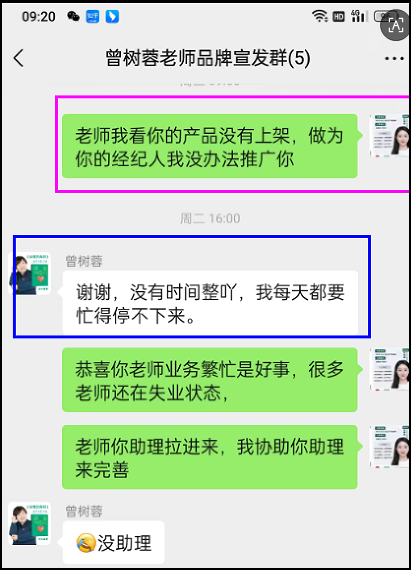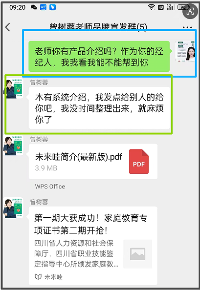 作为信任资产规划师赵越越,当赵越越主动向曾树蓉老师提出希望协助推广时,得到的回复却是“木有系统介绍”。曾树容老师发的仅是零散资料与一份过往简介。这让赵越越意识到,即便专业能力再强,缺乏系统化产品呈现,依然难以高效对外传播。信任资产规划师介入的第一步,往往就是帮助IP完成从“内容”到“产品”的跨越。