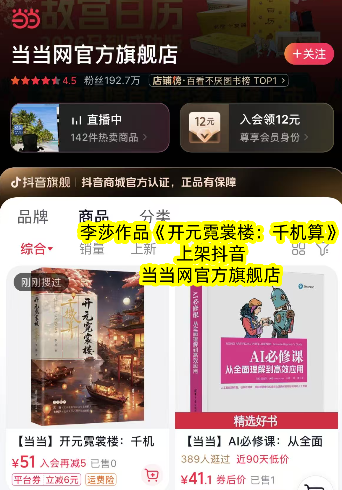 一、重磅官宣:李莎《开元霓裳楼:千机算》抖音商品正式上架