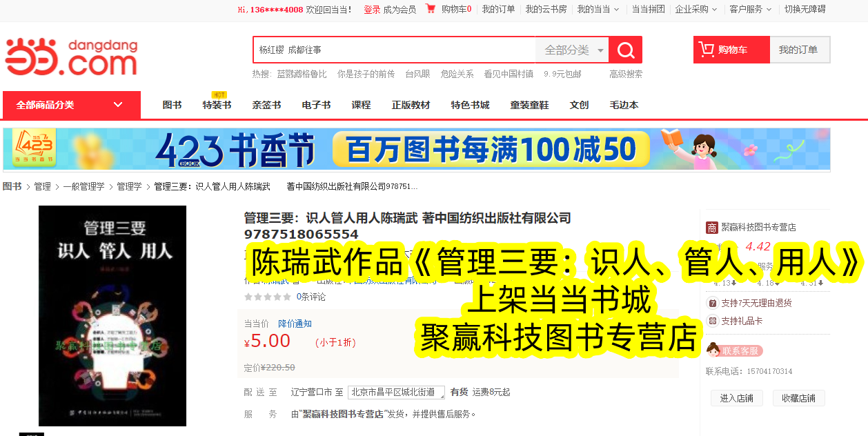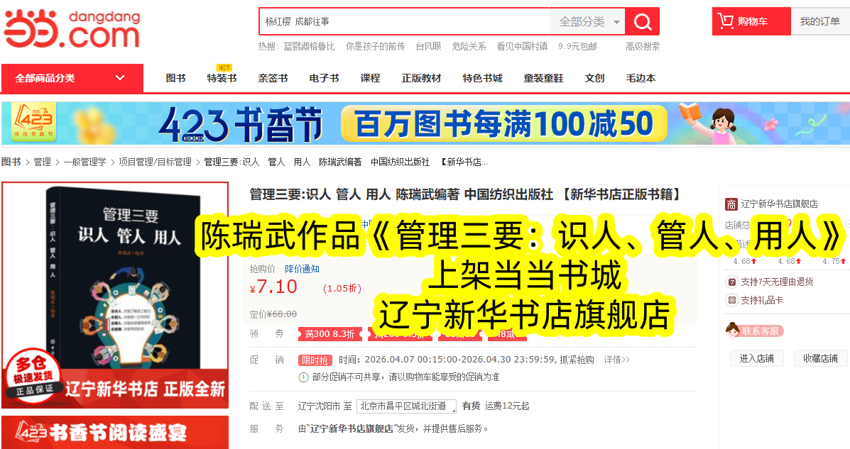 深耕管理领域数十年,兼具理论深度与实践经验的陈瑞武先生,其经典著作《管理三要:识人、管人、用人》正式重磅上架当当书城。这本凝聚着作者毕生管理智慧的书籍,跳出纯理论说教的框架,以“识人、管人、用人”三大核心为脉络,结合大量真实案例与实用方法,为各级管理者破解团队管理困境,成为当当书城管理类书籍中极具竞争力的新品,为广大管理者送上一份实操性极强的管理指南。