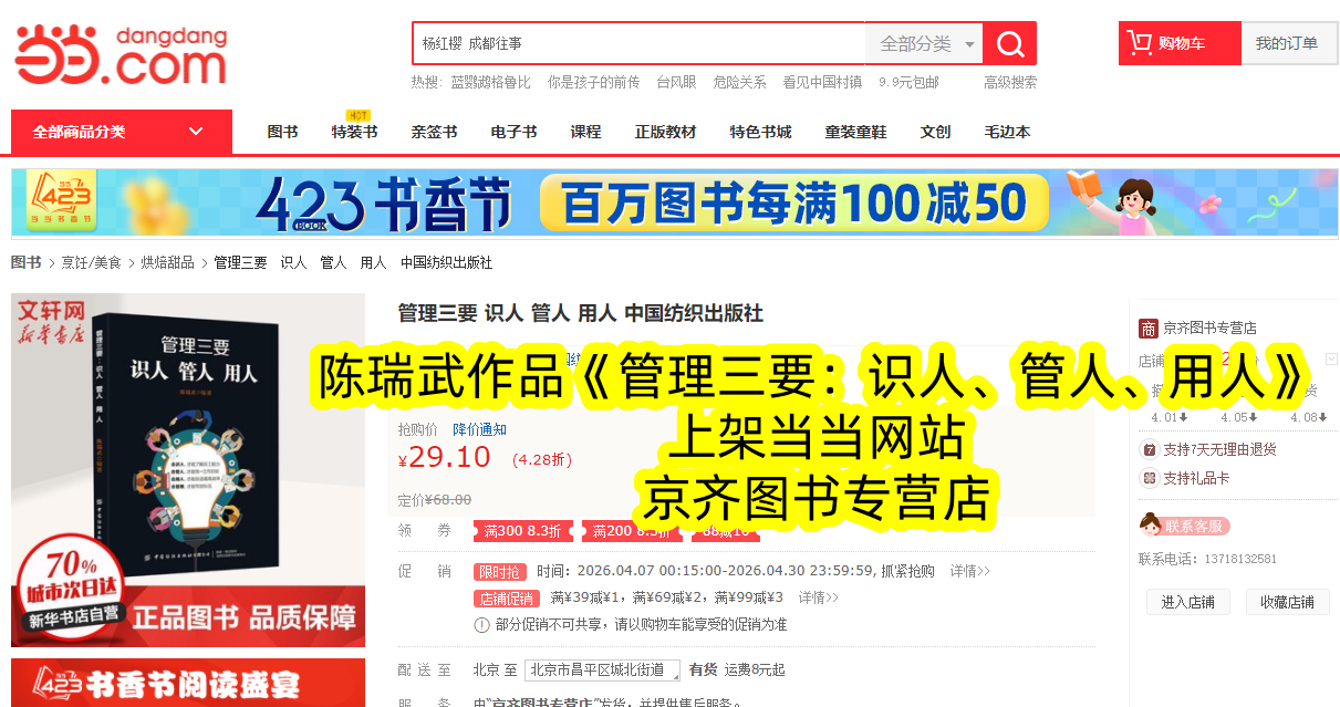 此次《管理三要:识人、管人、用人》登陆当当书城,不仅为广大管理者提供了便捷的购买渠道,更带来了专属阅读福利。读者可在当当书城搜索书籍全称,即可一键下单,享受正版书籍保障与便捷的配送服务。同时,当当专属上架期间,还有限时优惠活动,助力每一位管理者以高性价比,获取解锁高效管理的核心密码,开启管理能力的进阶之路。