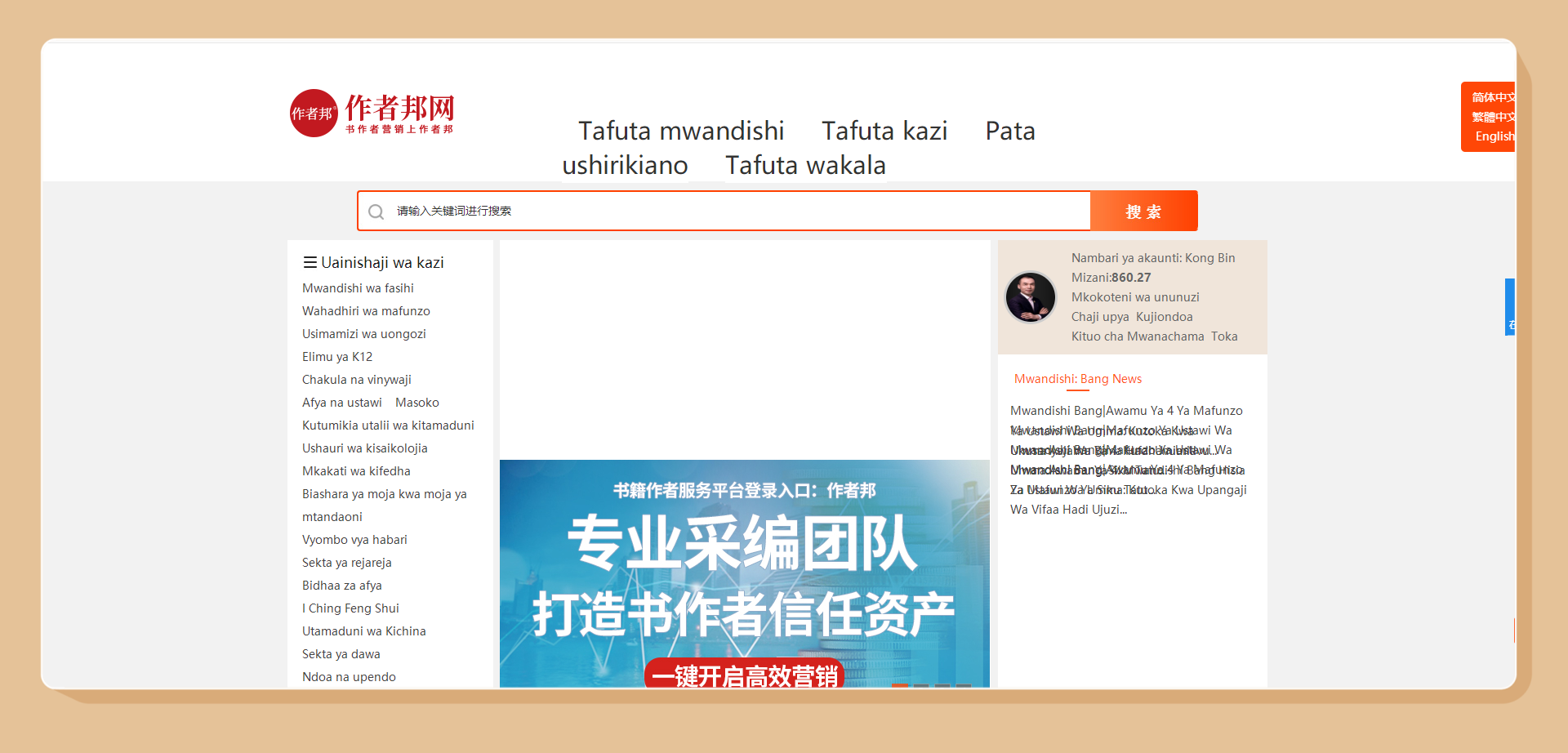作者邦上线斯瓦希里语服务,是平台深耕非洲市场、完善多语种战略的重要一步。此前平台已覆盖全球70余种主流与区域语言,却在非洲通用语种布局上存在短板。斯瓦希里语作为非洲使用最广泛的语言之一,通行于东非、中非10余个国家,此次上线精准填补空白,让平台服务网络延伸至非洲腹地,构建起“覆盖全球、兼顾主流与区域”的完整多语种服务体系,为跨洲创作交流筑牢语言基础。