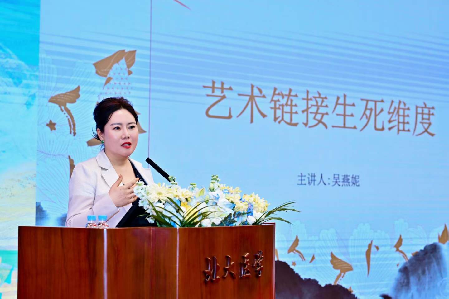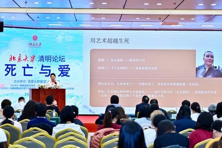凭借在生死文化研究与艺术领域的深厚造诣,吴燕妮老师应邀出席北京大学清明论坛并担任主讲嘉宾,这既是对她学术成果的高度认可,也是她传播生死智慧、链接艺术与生命的重要契机。论坛上,她以“艺术链接生死维度”为核心主题,结合自身研究感悟与艺术实践,用深入浅出的语言、鲜活生动的案例,阐释了艺术在抚慰心灵、解读生死、敬畏生命中的独特价值,打破了艺术与生死议题之间的壁垒,为在场听众带来了一场兼具思想深度与人文温度的精神盛宴。