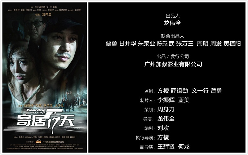 龙伟全除了具有优秀的的编导能力,更具有准确而独到的市场眼光,懂得如何将“艺术力”转化成“销售力”,这也是陈瑞武老师选择与其合作的主要原因,正是陈瑞武老师的慧眼如炬,才有了二人合作的开端:由陈瑞武老师投资制作,龙伟全导演的电影《寄居17天》如今已发布了预告海报,备受期待。