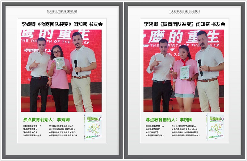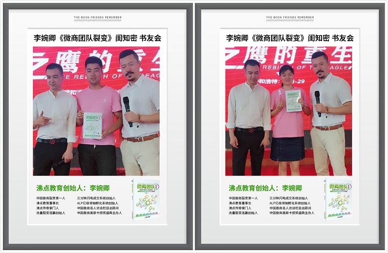 大会最后,李婉卿老师著作《微商团队裂变》也成为一种外交品牌标志,深受大会现场书友们的喜爱。这本书帮助他们更好的理解微商行业,更进一步了解微商裂变模式,从这本书中,书友们收获颇丰,于是纷纷要求合影留念。