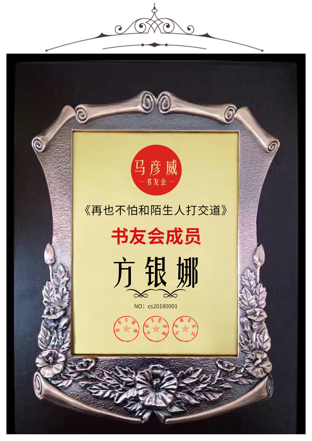 彦威著作《再也不怕跟陌生人打交道》由出书大师网策划出版,一经发行就在很多知名网上书城全渠道上线,火爆热销。在微商界以及其他社交圈都引起了极大的反响。老师在日常工作中经常可以接触到形形色色的人群,而正是这样的经历使得马老师练就了娴熟的交际技巧,这本书汇集了老师无数的心得体会。这本书深深的吸引着许多书迷,其中穆丝总代方银娜就是这本书的书迷之一。