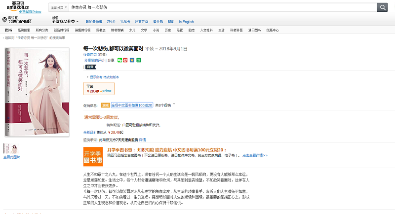 (福州云轩文化讯) 由传奇亦灵老师编撰的新书——《每一次悲伤,都可以微笑面对》,自从委托出书大师全权代理出版,如今已经成功出版,面向全国全网火爆热销。一时间在国内各大网站中,成为同类书籍销量榜单中的一匹黑马,读者书粉朋友们纷纷晒照,新书受到了热烈追捧,好评如潮。最近,出书大师网再次传来好消息,亦灵老师的新书将正式登陆全球最大的电商平台亚马逊书城,与此同时,亚马逊书城将此书列入了首页推荐,获得了巨大的曝光度和业界广泛持续的关注。