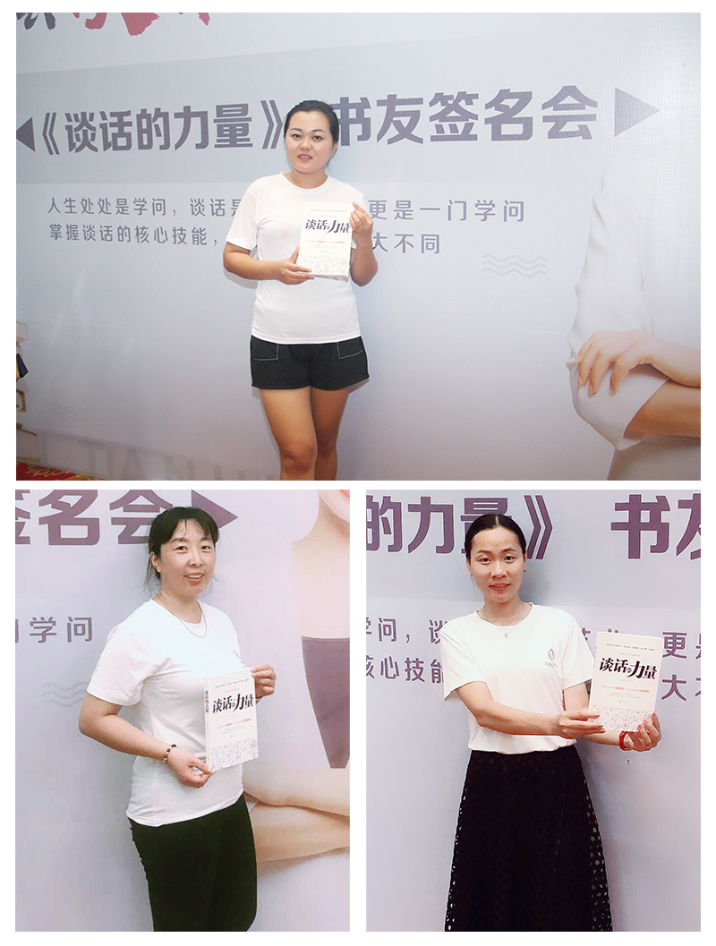书籍的火爆,使得吴小芳老师的自品牌得以广泛传播,在这样的大趋势下,来自五湖四海的忠实读者自发形成书友会,以支持吴小芳老师极其著作《谈话的力量》一书。在书友会这个友爱的大集体,他们可以互相分享自己实用的谈话技巧、交往经验,共同学习进步。