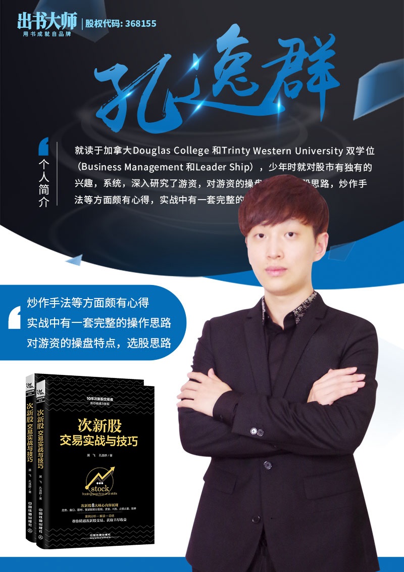 由孔逸群老师著作,委托出书大师全权代理出版的《次新股短线交易实战》一书的书号也已成功下发,敬请期待。