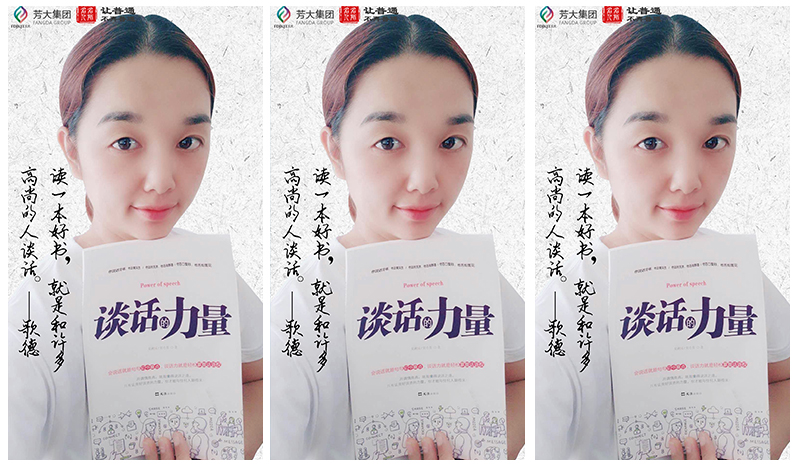 立足当下,王女士充满了力量,同时也心怀感恩。“拥有一颗感恩的心,你会感激逆境,正是逆境激发了你的潜能,你也会感恩这一路陪你走过,带你成长的人,因为他们使你免于久处安逸的平庸,创造生命的佳绩。而芳大集团与我的老大小石头正是带我历经生命蜕变的人。”王艳芳的成功与芳大集团的老板吴小芳是有一定关系的。而吴小芳的 《谈话的力量》也让她学到很多