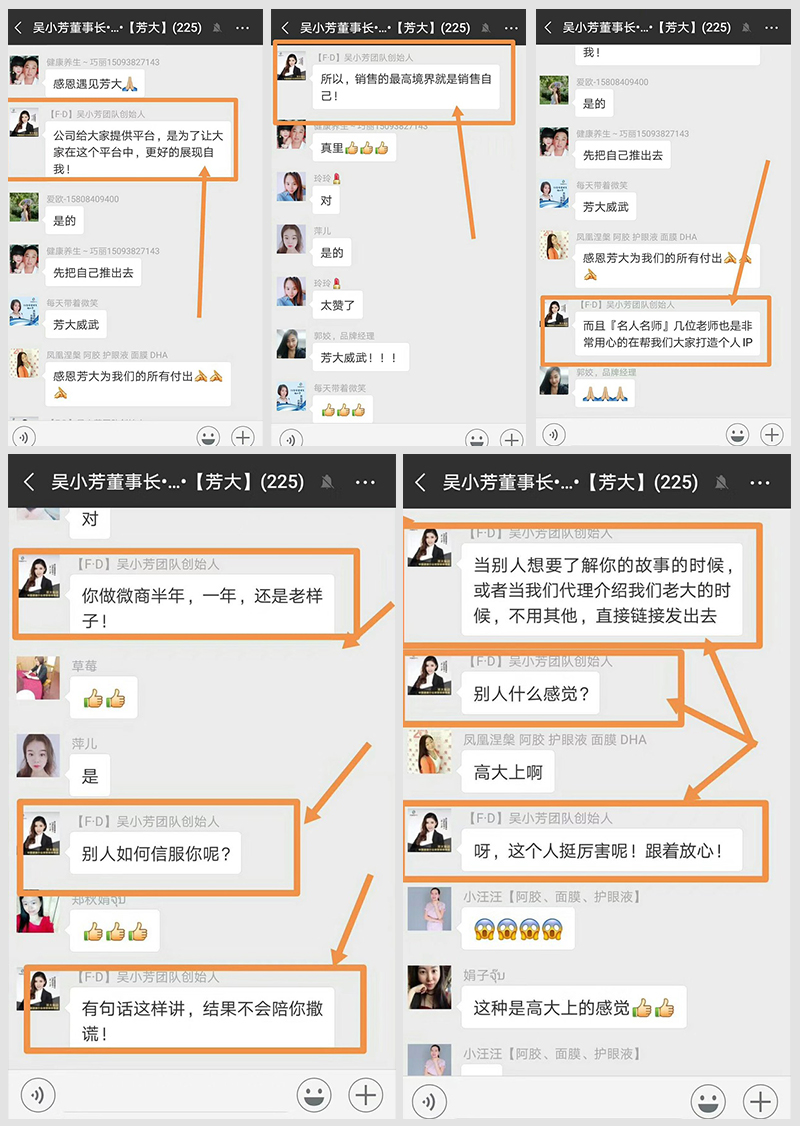 芳大集团创始人兼总裁,皇胶世家(F·D)品牌创始人,中国微商杰出代表……诸多光环发出的光芒将她紧紧包围着,在所有人想来,她应该是一位矜持的成功者,高高在上,不可一世。但实际上,她是个真诚而谦逊的人,一个无私付出的人,对自己的员工是那么亲切,而且总是亲身指点员工,帮助员工摆脱困境。