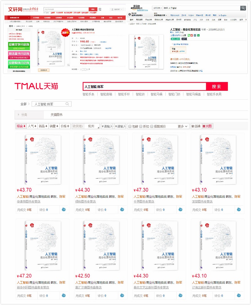 在《人工智能:商业化落地实战》一书中,陈顺军老师对此做了深入地剖析。近日,这本书更是登陆京东、当当、天猫、亚马逊、新华书店各大销售平台,呈现出全网热销的火爆场面,一时间好评如潮!