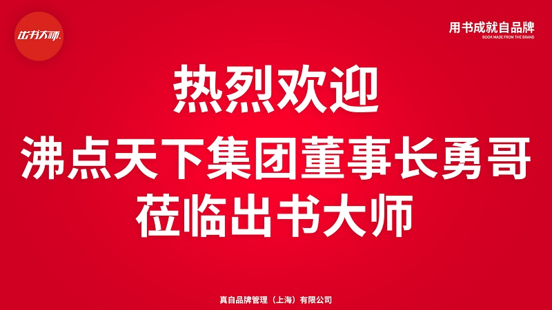 出书大师网十分荣幸能够成为勇哥的合作伙伴,促进各自企业共同前进,为彼此提供支持和帮助。在未来双方将携手同行,努力实现自品牌发展的更高目标!