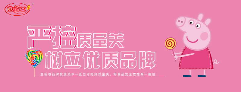 金稻谷品牌坚守严控质量的理念后就是坚持以“打造品牌棒棒糖”产品为愿景,持续创新。经过十多年的快速发展,现在金稻谷拥有完善的生产设备、创新的技术力量、科学规范的管理体系,使“金稻谷”品牌的产品实现多元化,摒弃品牌传统单一的生产模式。产品系列有:五彩棒棒糖,卡通造型棉花糖,透明花束糖,QQ糖,工艺果胶糖,拐杖糖,饼干和进口食品。
