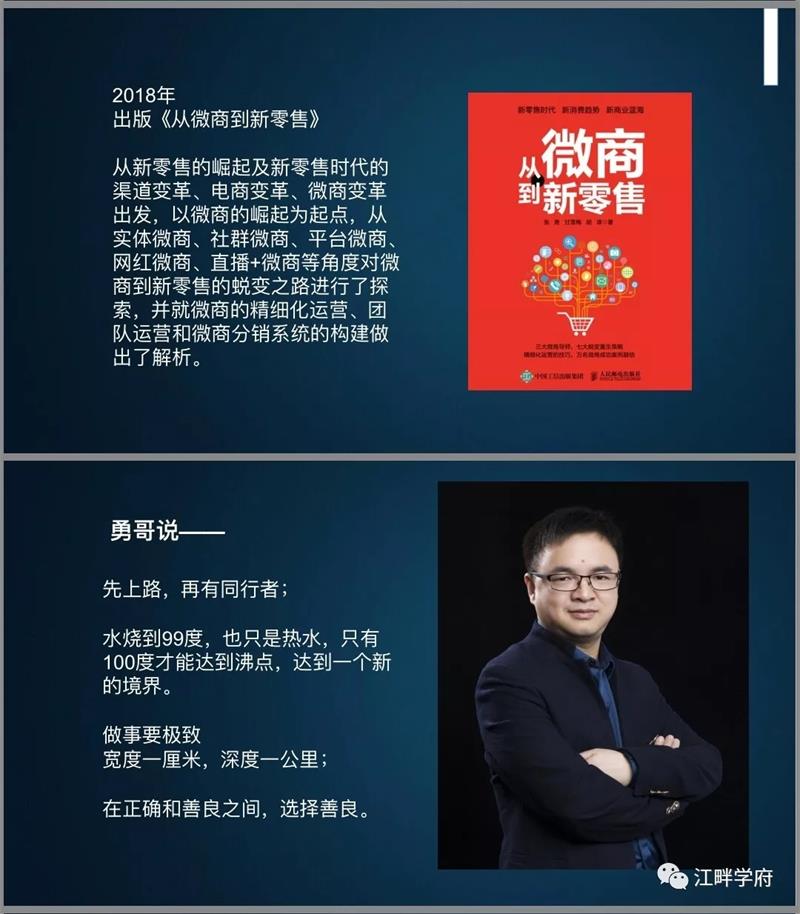 张勇:畅销书《从微商到新零售》作者|江畔大学发起人张勇(勇哥)