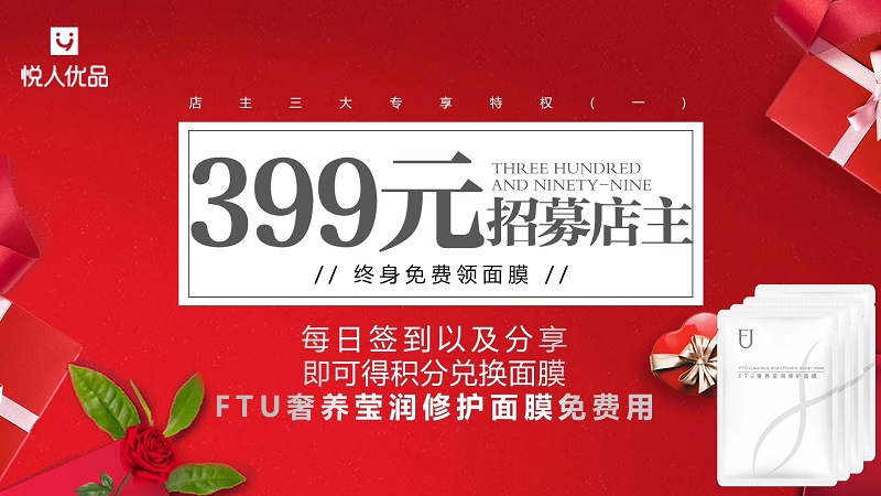 2019年1月,悦人优品重磅推出悦人优品“店主会员制”,打响了线上零售模式发展的第一枪。在这种模式下,创业者只需投入399元即可通过平台自用省钱,而且还能够终身免费领取高端FTU面膜。在成为店主之后,即可分享产品给好友赚钱,无需囤货发货,利润可直接提现。这种模式投入少,产出大,能够快速变现获得收益。