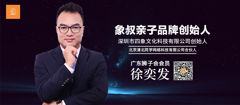 现在互联网有一门大火的课程《拼爹时代:好爸爸必备的19项亲子力》,就是专门针对爸爸的亲子教育开发的,一经推出就得到了很多网友的力捧。研发这门课程的徐奕发,人称象叔,他是深圳四象文化科技创始人、九一同桌教育咨询有限公司总经理、广东狮子会会员、广东狮子会围龙服务队理事、秘书长; 同时也是深圳大学传播学院校友会副会长; 深圳市龙岗区青年企业家协会会员; 广东省早期教育行业协会会员。