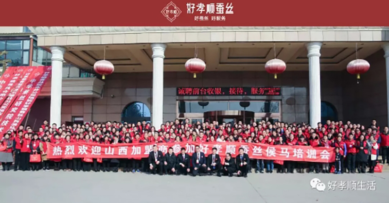 2019年5月,好孝顺蚕丝新增南通中国叠石桥国际家纺城门市展区,成为新接待网点;2019年5月16日,【好孝顺蚕丝湖北培训会】在武汉隆重召开;2019年5月27日,【好孝顺蚕丝河北培训会】在唐山盛大召开;2019年6月14日,【好孝顺蚕丝黑龙江培训会】在哈尔滨隆重举行;