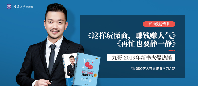 其中《这样玩微商,赚钱赚人气》一书,九哥带来了丰富的干货知识和独到的微商运营见解,大家学习后很快就能找到好货源,快速增粉,引爆人脉,最终从草根逆袭成微大咖。