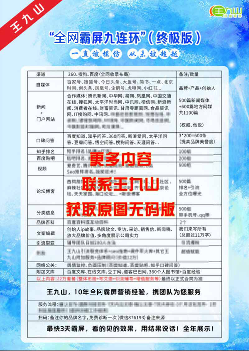 【擅长】全网引流与粉丝裂变、帮品牌做百度霸屏推广、引流策划、互联网ip打造、网络负面公关、微商起盘咨询、社群营销、seo、百度发布、引流课程等
