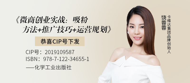 据悉,目前《微商创业实战:吸粉方法+推广技巧+运营规划》一书已正式取得书号和cip号,即将全线出版发行。郭一凡和饶蓉蓉两位老师在书中说道:对于微商创业运营,要有规划和中心,特别是对于初入微商行业的新人来说,各方面能力和业务还都没有完善,所以在微信运营这一块也没有明确定位,没有形成自己的风格和特点。公众号吸粉其实很简单,只要搭建出框架,做好后期的管理和运营,便能水到渠成。