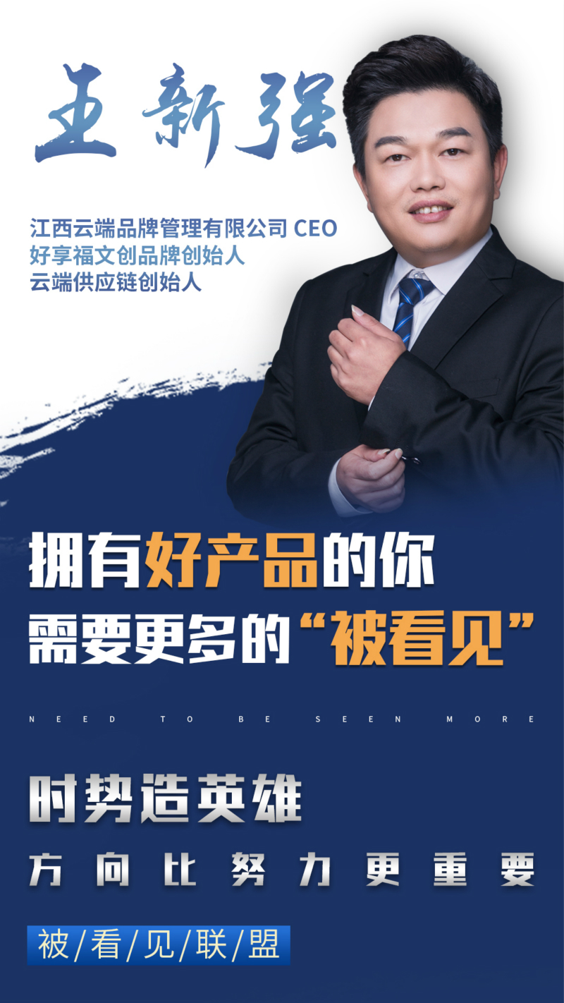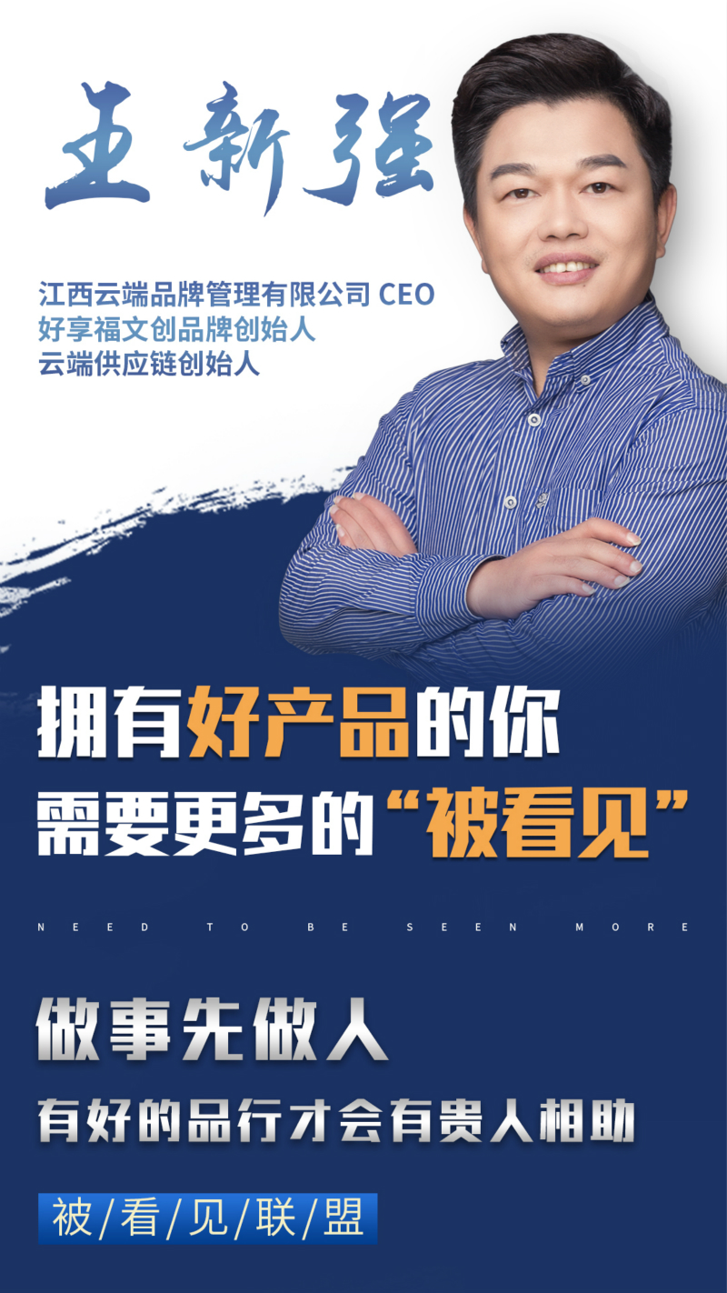 王新强,江西省博铭商务传媒有限公司、好享福文创品牌以及云端品牌管理有限公司的创始人,就是一个脚踏实地并懂得做人的企业家。