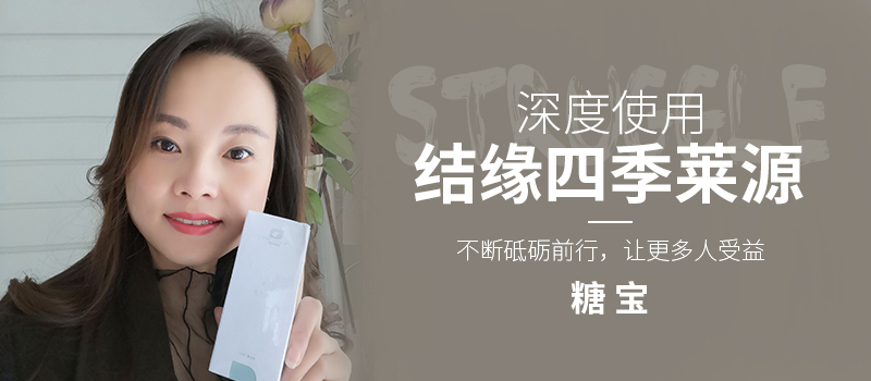现在糖宝已经成为四季莱源的总代理,她始终秉承好产品,让更多人受益的理念,不断砥砺前行,让大家真正受益,让四季水这样真正好的产品在市场上占有一席之地。