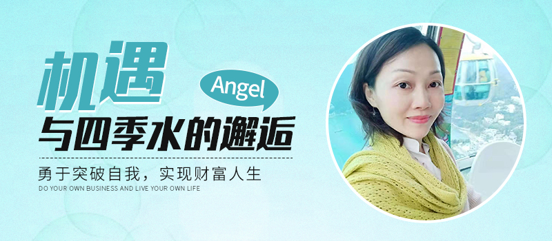 2015年Angel选择兼职四季水,通过线上线下相结合的方式做起了四季水生意,从元老总代起步,四年时间里,她与公司共同取得飞速成长。Angel说:所有的相遇,都是上天的安排,就如我遇见了四季水,也是一场缘份的相遇。