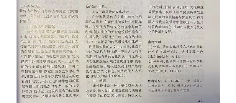 在希达文化看来,文章作品,以现代建筑设计理念作为切入点,将传统文化与现代科学技术、价值观念、社会文化精神相互结合,探讨和分析了现代建筑设计的新型文化形式与价值意义。作品,更以传统文化融入现代建筑设计中的意义表征,围绕应用传统材料、仿照传统形制以及借鉴传统符号与色彩、沿袭传统文化理念等层面进行展开。较为全面地探讨了传统文化在现代建筑设计中的相关体现。