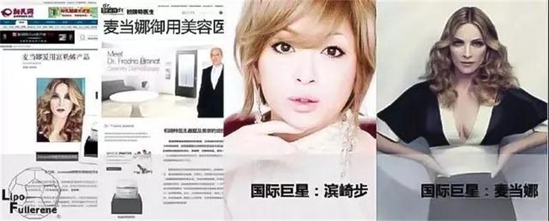 在世界几大发达国家中已经超过100多种医学品牌护肤品中都会添加富勒烯。但凡含有富勒烯的护肤产品,纷纷受到国际明星和各路名媛的青睐。如迈当娜、滨崎步及亚洲各大顶级明星都十分关注含富勒烯成分的抗衰护肤品!