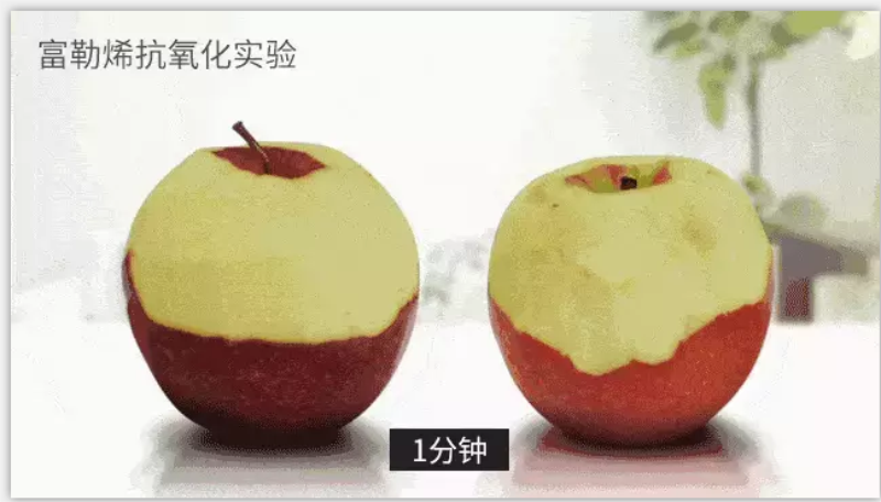 富勒烯是目前抗衰老成份中的顶级boss,已有4000多份科学实验报告显示,TA的抗氧化力是维生素C的172倍,被业界称为“自由基克星”。宛如肌肤的保鲜剂,就像实验中涂了富勒烯的苹果更不易被氧化。