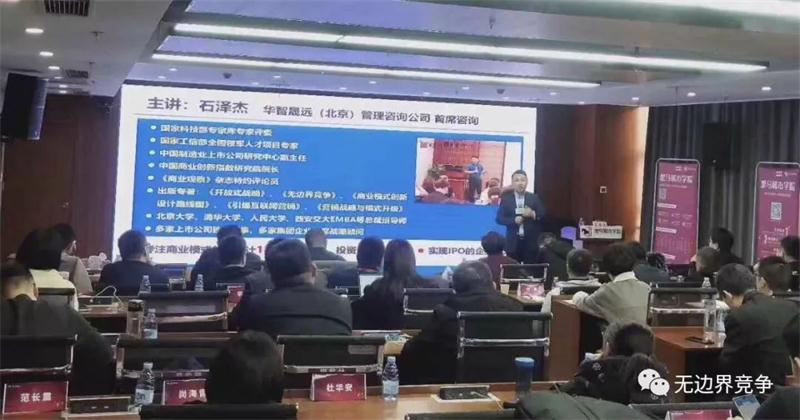 2019年12月8日,受山东泰安市政府、黑马城市学院泰安分院邀请,华智晟远石泽杰老师为泰安市优秀创新企业创始人讲授了《商业模式创新-传统企业转型升级》。