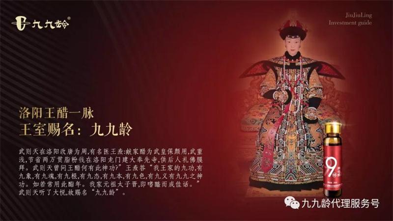 武则天听了大悦,赞道:“好个九九之魂,鹤龄延年,说得好,说得好,你家的醋何不叫九九龄呢”。从此九九龄便成了王家醋代名词。公元690年农历九月九日武则天在洛阳称帝,改唐为周,并改洛阳为神都。在中国历史上唯一的一位女皇,神采奕奕地站在洛阳应天门上。袖舞长风,笑纳六合,从此一代女皇承贞观之象,奠开元盛业。浓笔重彩地划进了史章。