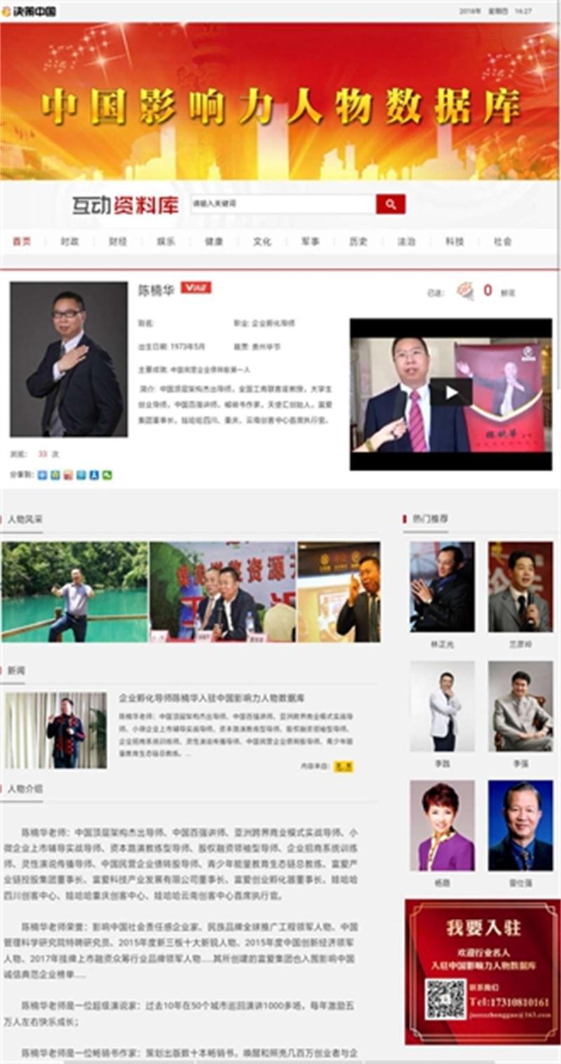 陈楠华老师荣誉:影响中国社会责任感企业家、民族品牌全球推广工程领军人物、中国管理科学研究院特聘研究员、2015年度新三板十大新锐人物、2015年度中国创新经济领军人物、2017年挂牌上市融资众筹行业品牌领军人物……其所创建的富爱集团也入围影响中国诚信典范企业榜单……