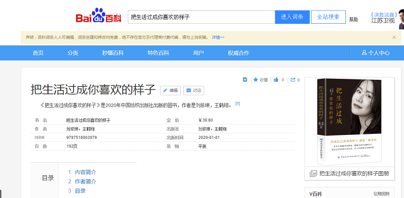 生活有千百种可能,总有一种是你想要的。出书大师网再次恭贺《把生活过成你喜欢的样子》一书成功收录百度、搜狗、互动、豆瓣等权威百科平台,希望广大读者朋友能够通过此书的系统理论分析,在低谷时调节心态,做好自己,过独一无二的人生。
