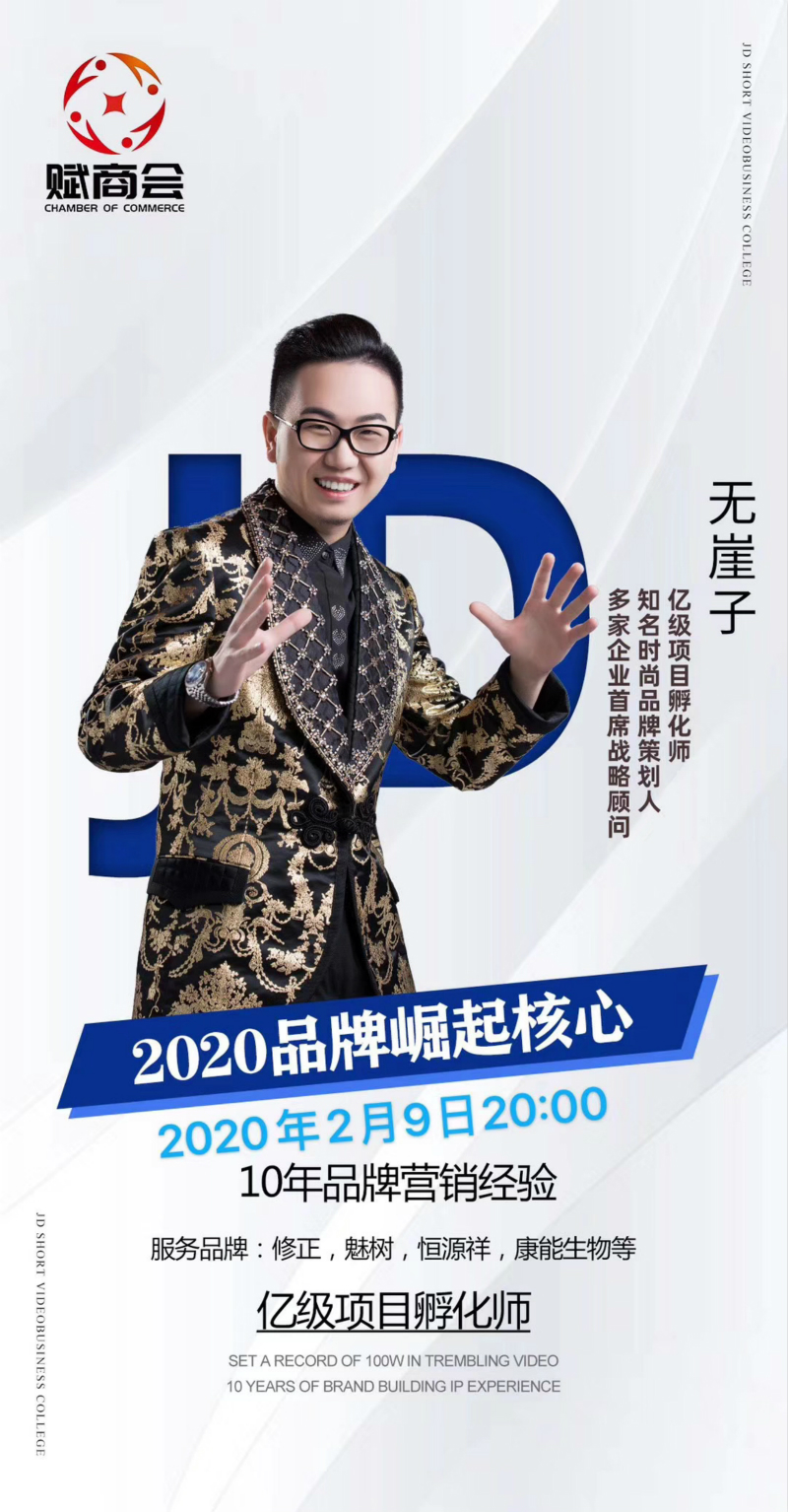 2020年2月9日20点整,具有十年品牌营销经验的亿级项目孵化师无崖子老师受邀为赋商会进行授课,传授主题为《2020品牌崛起核心》有关的品牌经验。