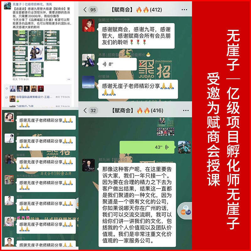 正是出于商业体对品牌崛起价值的需求和重视,赋商会特别邀请亿级项目孵化师无崖子老师,为广大赋商会的成员进行亲自授课。从而,传授有关2020品牌崛起核心的价值不菲的精彩课程。并且,为广大听课的赋商会成员,带来了一次别开生面的经验分享。成员们也深深地表示,这堂品牌经验分享课让大家学到了很多有用而实际的课程内容。同时也表示,自己从课堂中收获了许多关于品牌的思维和经验。