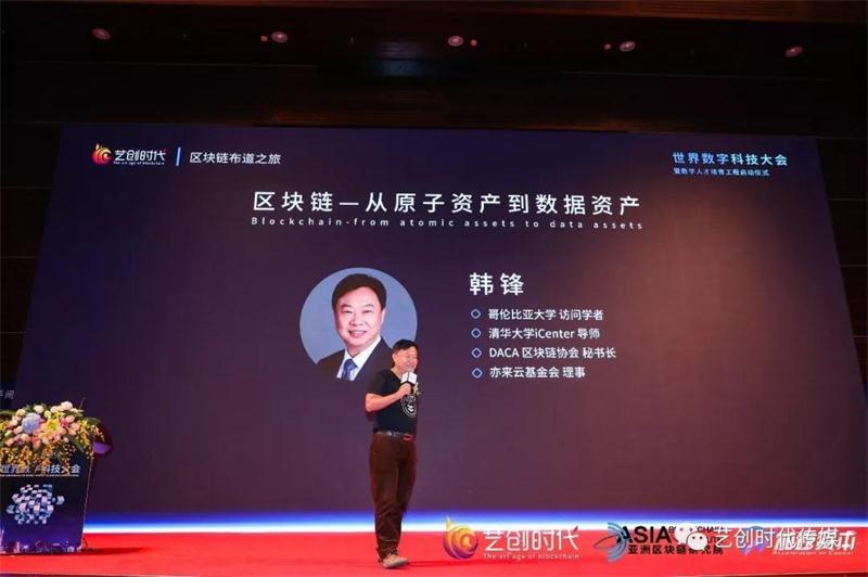 接下来进行分享的是哥伦比亚大学访问学者,清华大学iCenter导师,DACA 区块链协会秘书长韩锋,在《区块链-从原子资产到数据资产》分享中其表示,财富不是物,而是全球的共识,为此他引用了国富论里面的一句:市场就是去中心化的执行消费和投资人的基础协议:互通有无,等价交换。工业革命大大提高了生产力,但随之而来交易的模式却依旧沿用之前的模式,造成了很多不必要的浪费,随着数字网络技术的发展,人类的交易量呈现爆炸式增长,交易速度以及超过了生产速度。如果交易速度大于生产的速度。那么多出来的交易怎么办?当交易速度超越生产速度的时候,超过生产速度的交易就会变成投资行为。要实现交易行为到投资行为的转变,需要建立明确的产权制度。只有明确的产权归属,才能有资本的概念,有资本才能投资而形成资本市场,创造财富。当资产确权的速度跟得上交易的速度,加之数据直接产生信用,数据将逐渐成为一种虚拟资产形式,而区块链可以直接建立信用的顺序和逻辑关系。